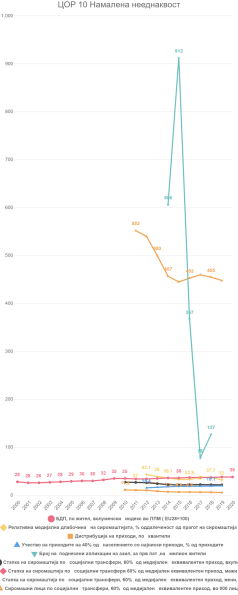 ЦОР 10 Намалена нееднаквост -Релативна медијална длабочина на сиромаштијата, % оддалеченост од прагот на сиромаштија