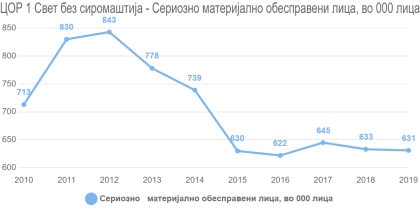 ЦОР 1 Свет без сиромаштија – Сериозно материјално обесправени лица, во 000 лица