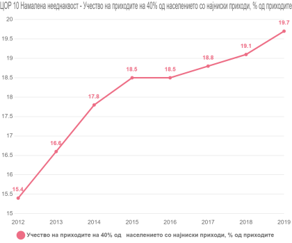 ЦОР 10 Намалена нееднаквост – Учество на приходите на 40% од населението со најниски приходи, % од приходите
