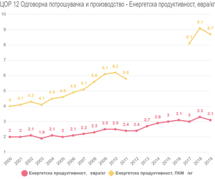 ЦОР 12 Одговорна потрошувачка и производство – Енергетска продуктивност, евра/кг