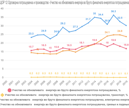 ЦОР 12 Одговорна потрошувачка и производство -Учество на обновливата енергија во бруто финалната енергетска потрошувачка