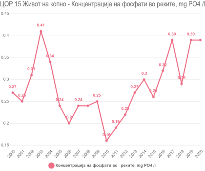 ЦОР 15 Живот на копно – Концентрација на фосфати во реките, mg PO4 /l