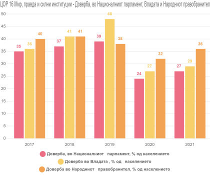 ЦОР 16 Мир, правда и силни институции – Доверба, во Националниот парламент, Владата и Народниот правобранител