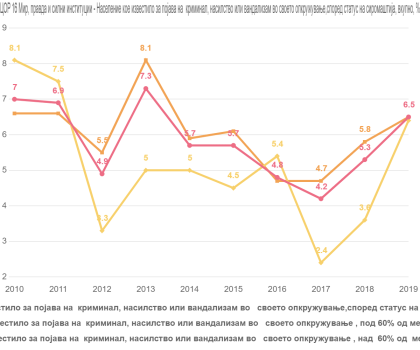 ЦОР 16 Мир, правда и силни институции – Население кое известило за појава на  криминал, насилство или вандализам во своето опкружување,според статус на сиромаштија, вкупно, %