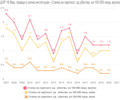 ЦОР 16 Мир, правда и силни институции – Стапка на смртност, од убиства, на 100 000 лица, вкупно