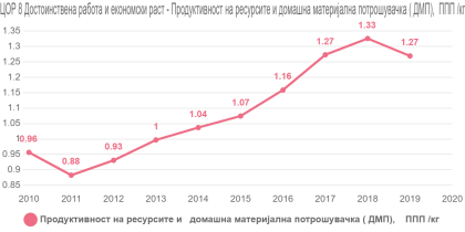 ЦОР 8 Достоинствена работа и економски раст – Продуктивност на ресурсите и домашна материјална потрошувачка ( ДМП),  ППП /кг