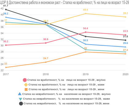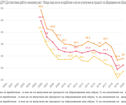 ЦОР 8 Достоинствена работа и економски раст – Млади лица кои не се вработени и кои не се вклучени во процесот на образование или обука