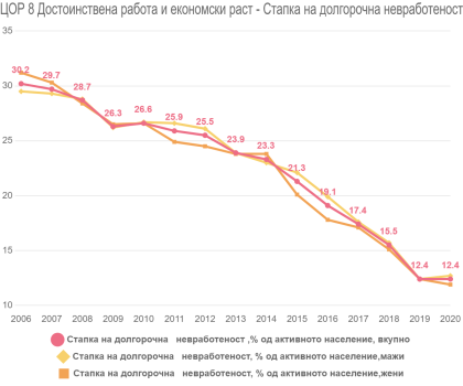ЦОР 8 Достоинствена работа и економски раст – Стапка на долгорочна невработеност