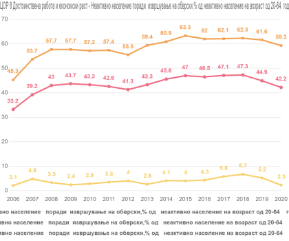 ЦОР 8 Достоинствена работа и економски раст – Неактивно население поради  извршување на обврски,% од неактивно население на возраст од 20-64  год
